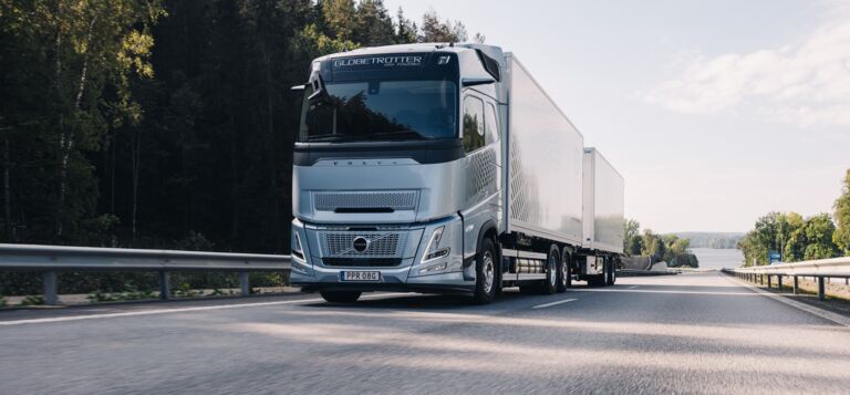 - De driepijlerstrategie van Volvo Trucks om netto‑nul CO2-uitstoot te bereiken bestaat uit batterij‑elektrische trucks, brandstofcel‑elektrische trucks en verbrandingsmotoren die op hernieuwbare brandstoffen draaien.